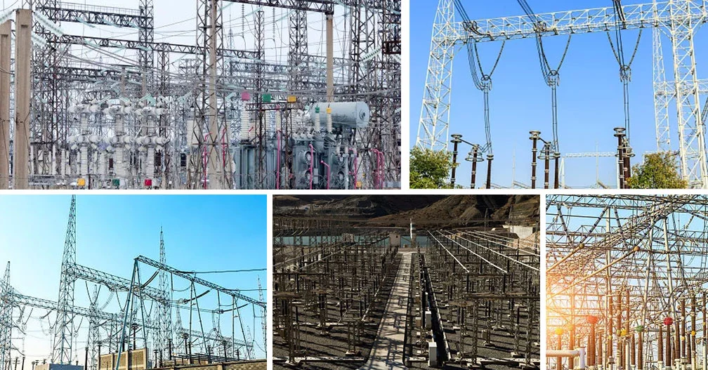 துணை மின்நிலையம் மற்றும் பிற வெளிப்புற கம்பி, பொதுவான பெயரின் முக்கிய ஆதரவு கட்டமைப்பின் உபகரணங்கள். இது மின்னழுத்த நிலை, அளவு, உபகரணங்கள் அமைப்பு, கட்டுமானம் மற்றும் செயல்பாட்டு நிலைமைகள் மற்றும் உள்ளூர் காலநிலை நிலைமைகளுக்கு ஏற்ப தீர்மானிக்கப்படுகிறது. மின்சாரத்தின் தன்மைக்கு ஏற்ப, வெவ்வேறு மின்னழுத்த நிலைகளுக்கு கம்பிகள், கம்பிகள் தரையில் மற்றும் கம்பிகள் கட்டமைப்புகளுக்கு இடையே ஒரு குறிப்பிட்ட தூரம் தேவைப்படுகிறது. எனவே, துணை மின்நிலைய அமைப்பு உயர் நெடுவரிசைகள் மற்றும் சிறிய பிரிவுகளால் வகைப்படுத்தப்படுகிறது, பெரிய நெகிழ்வுத்தன்மையின் கட்டமைப்பிற்கு சொந்தமானது. தொழில்நுட்ப தளவமைப்பின் வகை வகைப்பாட்டின் அடிப்படையில், நடுத்தர தளவமைப்பு, அரை உயர அமைப்பு மற்றும் உயர் தளவமைப்பு ஆகியவை உள்ளன. உயர் மின்னழுத்த நிலை கொண்ட துணை மின்நிலையத்தில் அரை-உயர் தளவமைப்பு மற்றும் உயர் தளவமைப்பு முக்கியமாகப் பயன்படுத்தப்படுகின்றன.